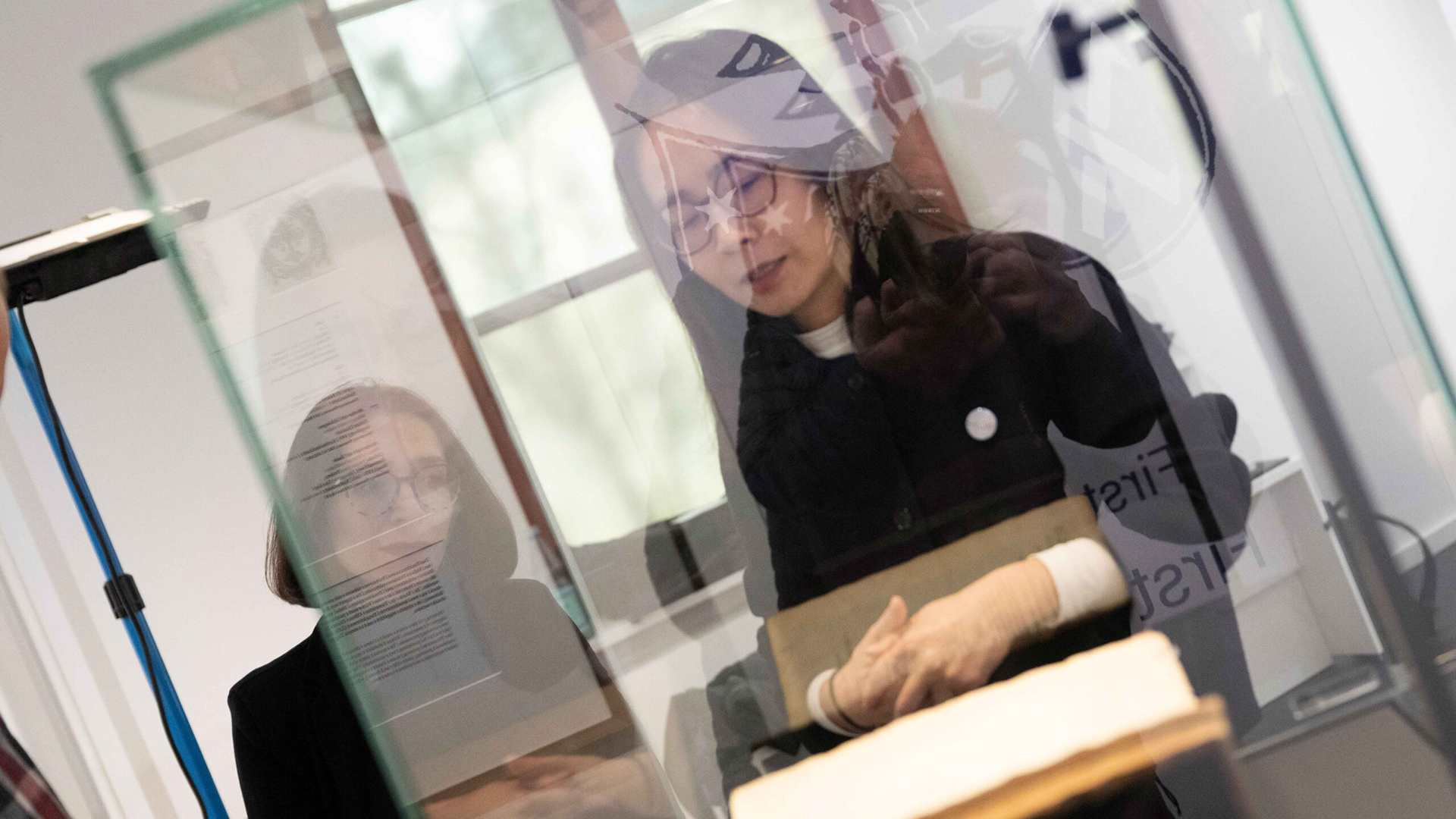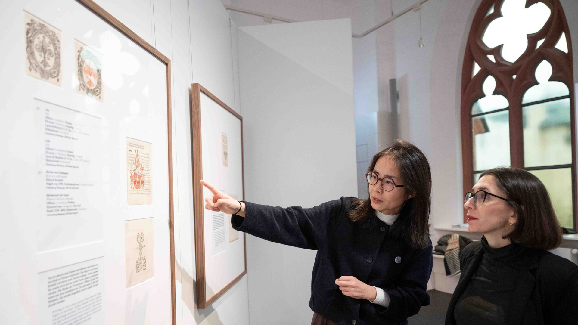 Dies ist die erste Sonderausstellung im Ausweichquartier des Gutenberg-Museums: Während am ursprünglichen Standort gegenüber dem Dom der Neubau entsteht, ist das Museum unter dem Motto "Gutenberg-Museum MOVED" vorübergehend in die Räumlichkeiten des Naturhistorischen Museums in der Mainzer Altstadt gezogen. Für die beiden Kuratorinnen war das Chance und Herausforderung zugleich. "Die alten gotischen Fenster der ehemaligen Klosterkirche des Reichklaraordens verleihen diesem Raum eine ganz besondere Atmosphäre", so Nanobashvili. "Doch da das Gebäude unter Denkmalschutz steht, durften wir nicht bohren oder gar die Wandfarbe ändern. Gemeinsam mit den Ausstellungsgestaltern Bach Dolder aus Darmstadt haben jedoch wir eine geeignete Präsentation entwickelt."