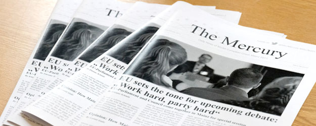 Sechs Teilnehmerinnen und Teilnehmer schlüpfen in die Rolle von Journalisten. Sie liefern die Beiträge für die täglich erscheinende Zeitung "The Mercury". "In den ersten Jahren gestaltete sich das noch recht brav", erzählt Chefredakteur Niederelz. "Die Zeitung war im Grunde eine Art Sitzungsprotokoll. Dann haben wir unsere Journalisten ermutigt, näher an unsere Politiker heranzutregen, auch mal boulevardesk und polemisch zu schreiben." Nun werden Parlamentarier gern interviewt und mitunter scharf angegangen. "Das Interesse am 'Mercury' ist groß, jeder will wissen, ob was über ihn drinsteht, wie er dargestellt wird."